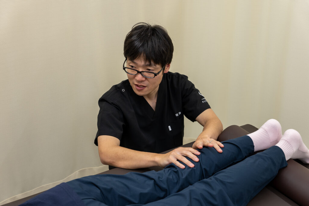 関節ケアの第一人者、角田紀臣が考案した「つのだ式関節整体」の公式弟子プログラム『関節整体マスタープログラム』の修了生です。私がこのプログラムを修了した際、全国で合格者は私を含めてわずか4名しかいませんでした。他の方は医師が2名、ベテランの女性鍼灸師が1名という非常にハイレベルなメンバーの中で、厳しい研鑽を積み、認められた限られた技術者のみが提供できる特別な施術です。